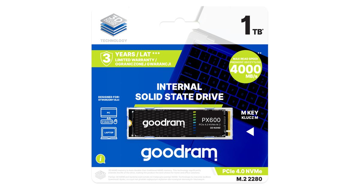 Goodram SSDPR-PX600-1K0-80, 1 TB, M.2, 5000 MB/s