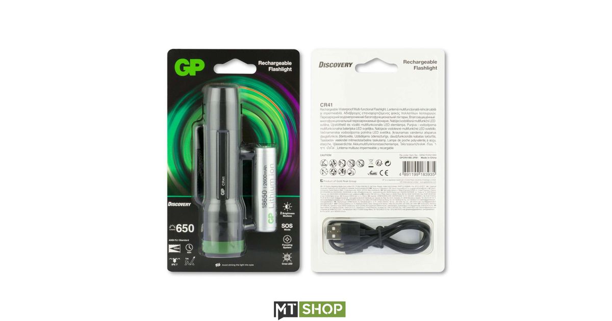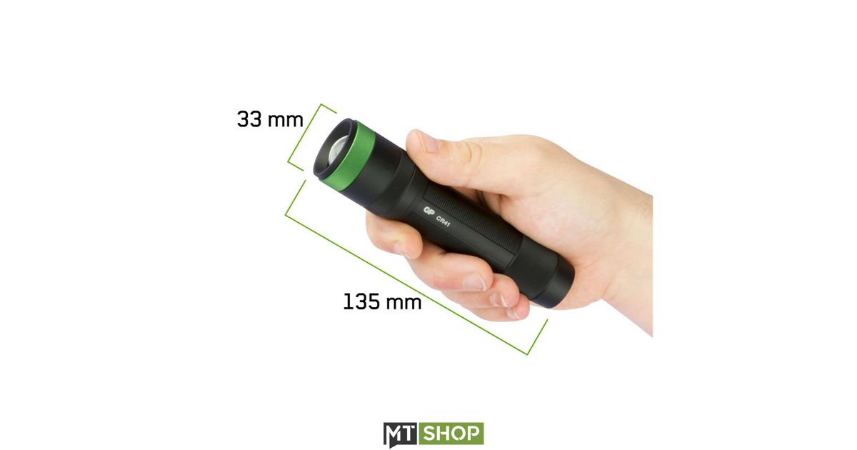 GP Batteries CR41, Käsikokoinen taskulamppu, Musta, Vihreä, IPX7, LED, 1 lamppua, USB
