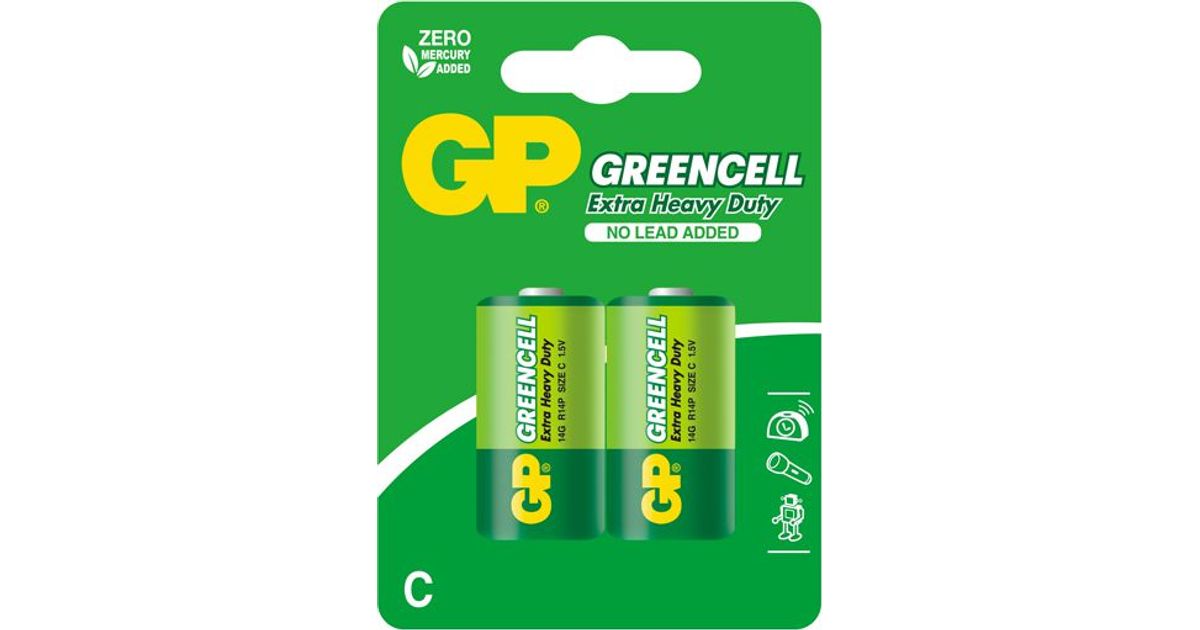 GP Batteries Greencell C, Kertakäyttöinen akku, C, Sinkkikloridi, 1,5 V, 2 kpl, Vihreä