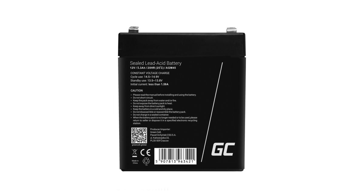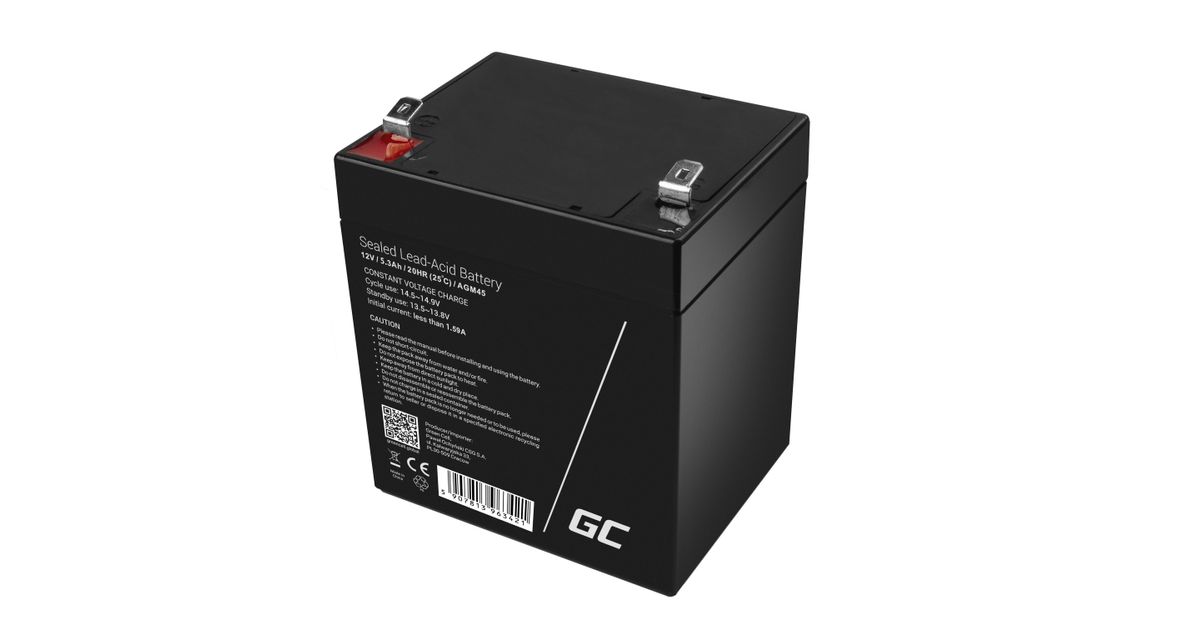 Green Cell AGM45, Sealed Lead Acid (VRLA), 12 V, 1 kpl, Musta, 5,3 ah, 5 vuosi/vuosia
