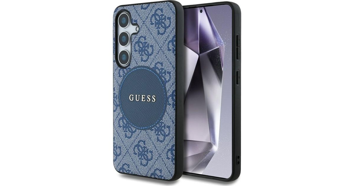Guess 4G Round Patch Classic Logo MagSafe ümbris Samsung Galaxy S25 sinine