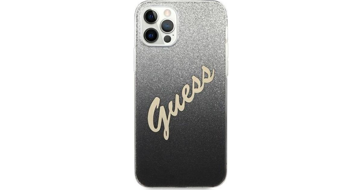 Guess Case Guess GUHCP12MPCUGLSBK Apple iPhone 12/12 Pro must/must kõvaümbris Glitter Gradient Script