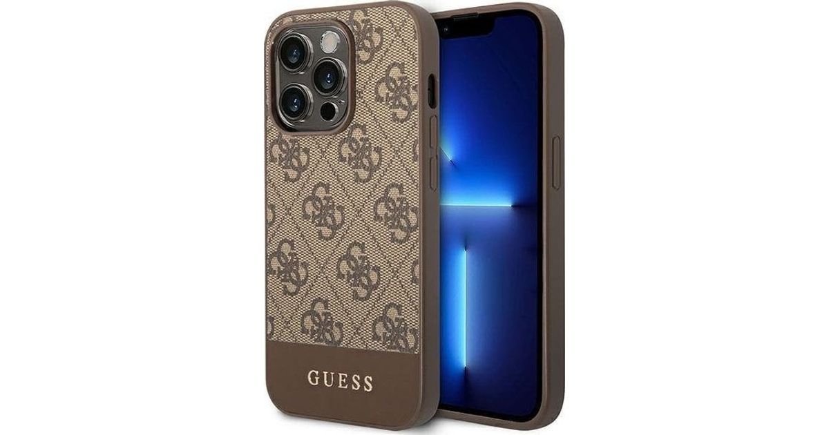 Guess Guess 4G Bottom Stripe Metal Logo Collection – iPhone 14 Pro ümbris (pruun)