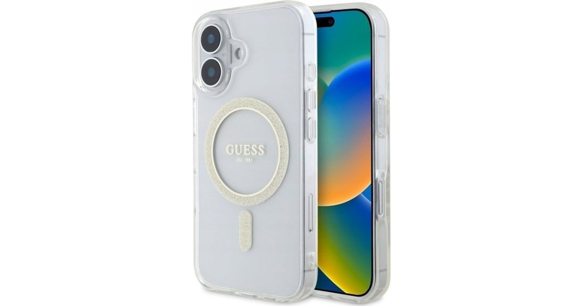 Guess Guess GUHMP16MHFGERET iPhone 16 Plus 6,7" läbipaistev kõvaümbris IML Glitter Circle MagSafe