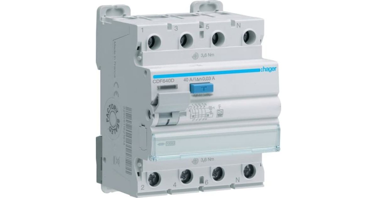 HAGER CDF640D FI-Schutzschalter 4P 10kA 40A 30mA TypF (CDF640D)