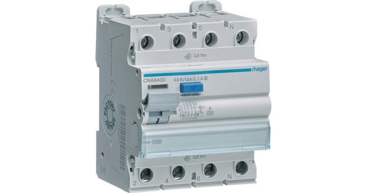 Hager CNA640D Fehlerstromschutzschalter 4p 10kA 40A 100mA S - Fehlerstromschutzschalter 4 polig 10kA 40A 100mA Typ S selektiv. Fehlerstrom-Schutzschalter (FI) nach DIN EN 61008-2-1