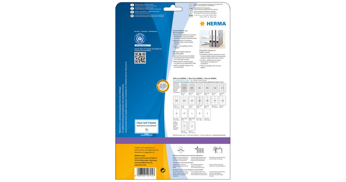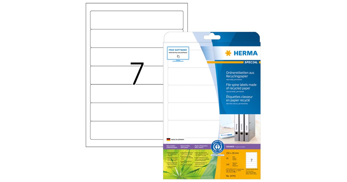 HERMA 10745, Valkoinen, Itse kiinnittyvä tulostintarra, Stanssausmerkintä, Paperi, Laser/Inkjet, Kiinteä