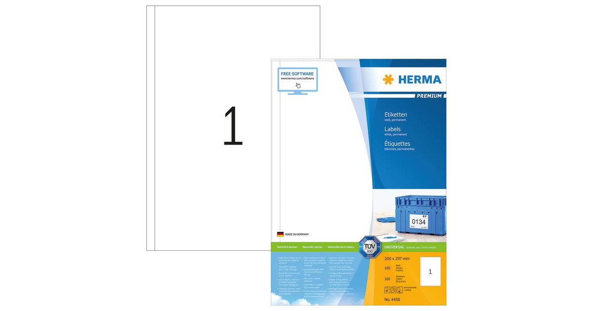 HERMA 4458, Valkoinen, Suorakulmio, Kiinteä, Paperi, Matta, Laser/Inkjet
