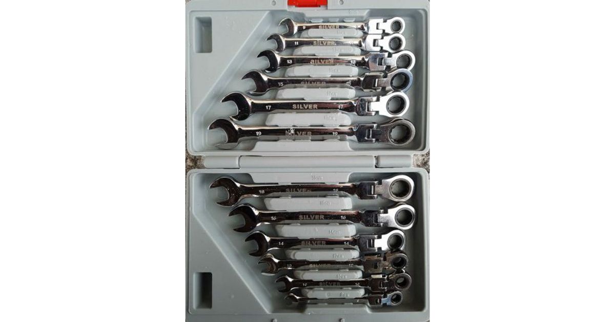 Hõbedane Kombineeritud mutrivõtmete komplekt liigendi ja põrkmehhanismiga 8 - 19mm 12 tk. (SK-012-01)