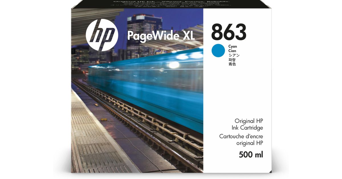 HP 863 500-ml Cyan PageWide XL Ink Cartridge, Väripohjainen muste, 500 ml, 1 kpl, Kertapakkaus