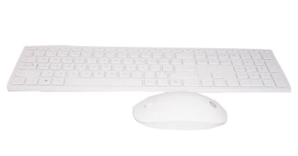 HP 928512-051, Täysikokoinen (100 %), Langaton RF, AZERTY, Valkoinen, Sisältää hiiren