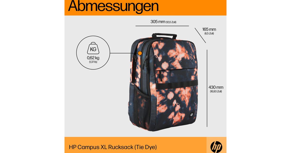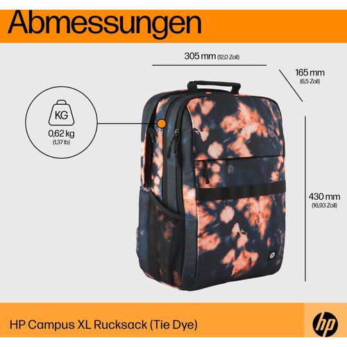 HP Campus XL Rucksack (Tie Dye) - 50% post-consumer recycled plastic, LDPE bag contains 100% recycled plastic, Hanger tag is made... - 305 mm - 165 mm - 430 mm - 620 g - 305 mm (7J