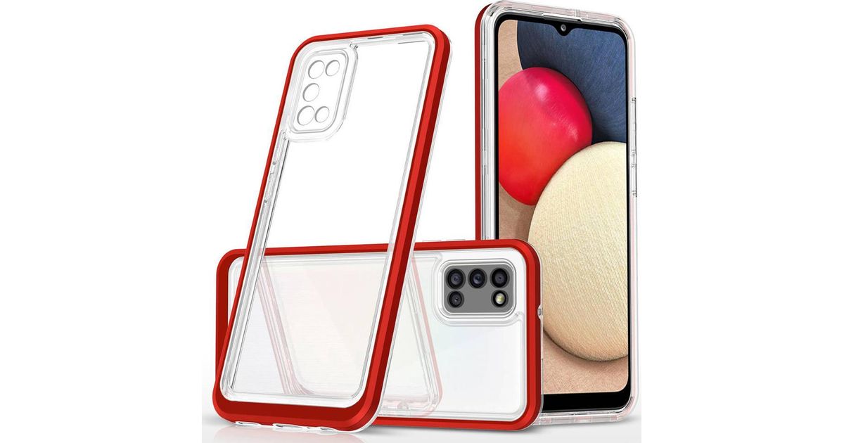 Hurtel Clear 3in1 ümbris Samsung Galaxy A03s (166) geelkattega punase raamiga