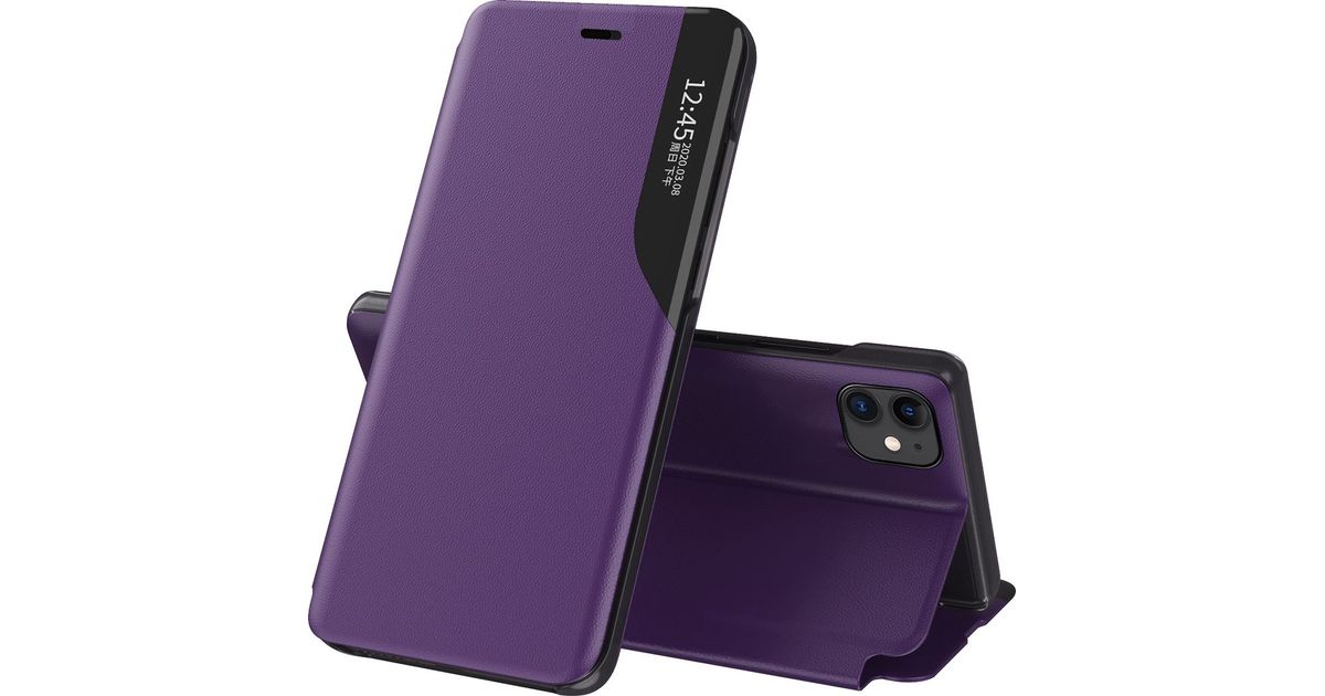 Hurtel Eco Leather View Case elegantne klapi ja aluse funktsiooniga ümbris iPhone 13 mini lillale