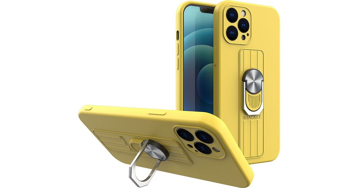 Hurtel Ring Case silikoonist ümbris sõrmehoidja ja alusega iPhone 12 Pro Max kollasele