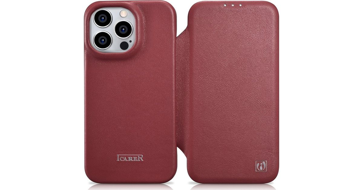 iCarer iCarer CE Premium nahast ümbris iPhone 14 Pro Max nahast ümbris koos flip Magnetic MagSafe Red (WMI14220716-RD)