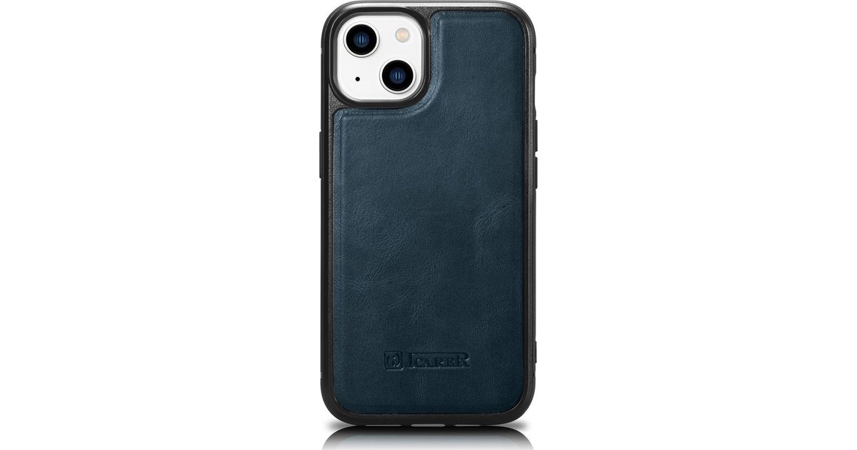 iCarer iCarer Leather Oil Wax ümbris, mis on kaetud naturaalse nahaga iPhone 14 jaoks (ühildub MagSafe'iga) sinine (WMI14220717-BU)