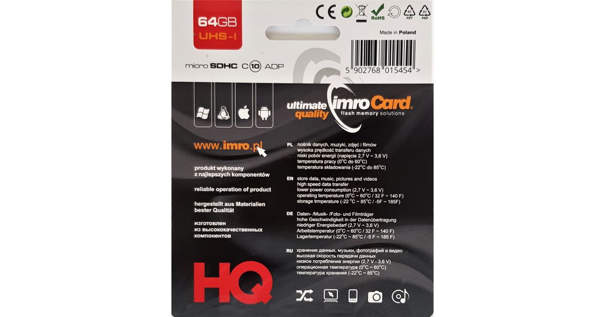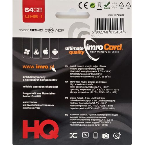 IMRO 10/64G UHS-I ADP muistikortti 64 GB MicroSDHC Luokka 10
