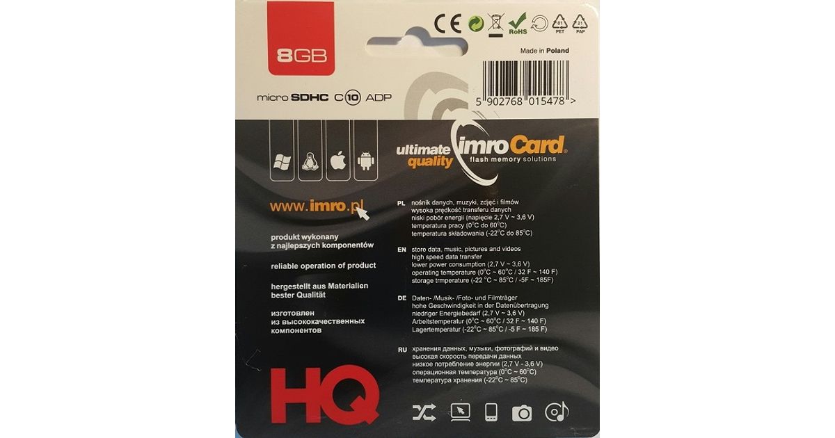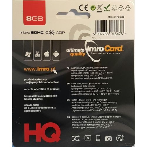 IMRO 10/8G ADP muistikortti 8 GB MicroSDHC Luokka 10