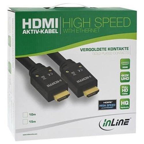 InLine 17515B, 15 m, HDMI-tyyppi A (vakio), HDMI-tyyppi A (vakio), 18 Gbit/s, Äänen paluukanava (ARC), Musta