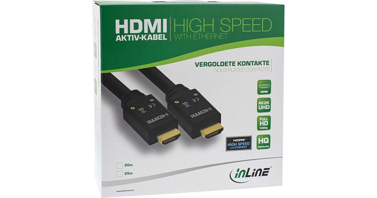 InLine 17520B, 20 m, HDMI-tyyppi A (vakio), HDMI-tyyppi A (vakio), 18 Gbit/s, Äänen paluukanava (ARC), Musta