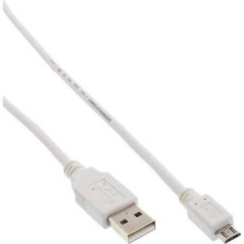 InLine 1m USB 2.0 A-microB m/m, 1 m, USB A, Micro-USB B, USB 2.0, Uros/uros, Valkoinen