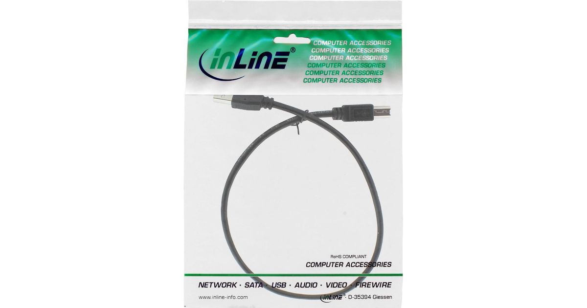 InLine 34503X, 0,3 m, USB A, USB B, USB 2.0, Musta