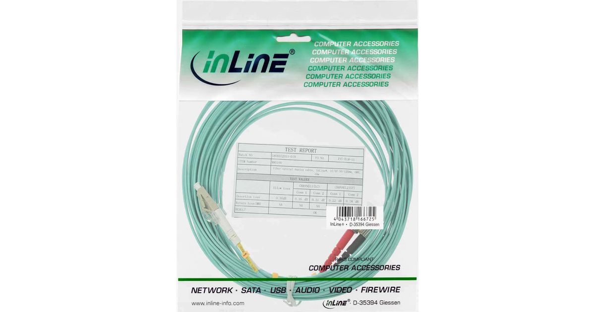 InLine LC/ST, 7.5 m valokuitukaapeli 7,5 m 2x LC 2x ST OM3 Turkoosi, Vedenvärinen