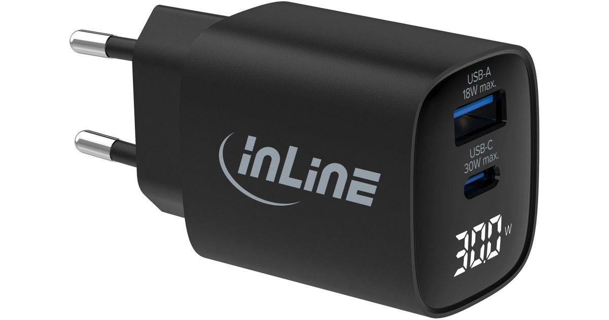 InLine USB PD Netzteil GaN Ladegeraet 2-Port USB-C+ USB-A 30W mit (31550)