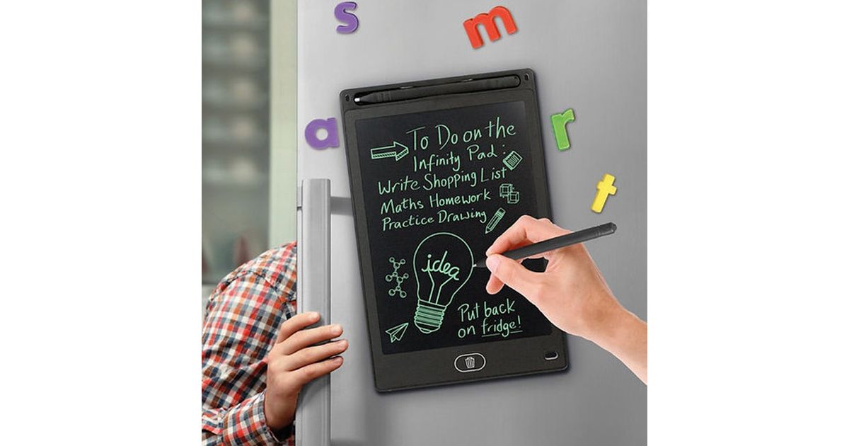 Magnetitega digitaalne värvidega joonistustahvel metallist pindadele kinnitamiseks. Ekraani lukustamine. Nupust kustutamine. Pliiats ja CR2025 patarei komplektis kaasas.