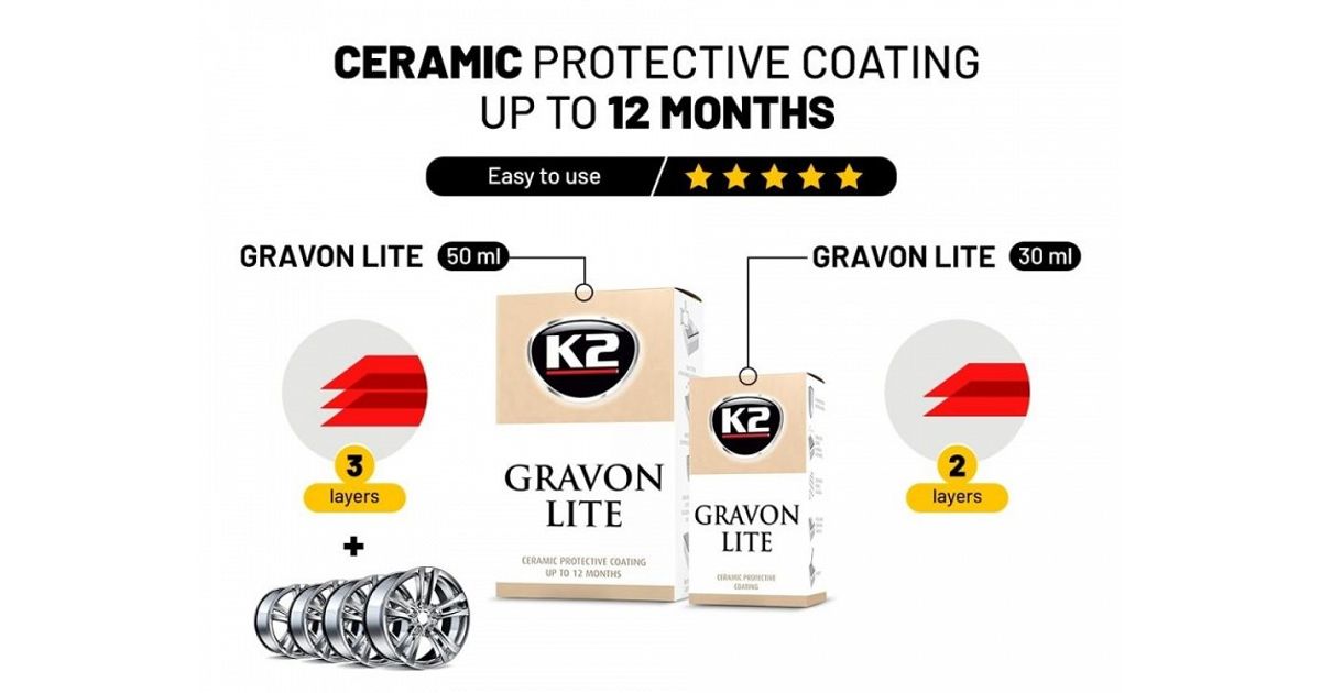 Keraamiline pinnakaitsevahend. mis kaitseb pinda kriimustuste. mustuse. UV-kiirguse ja muude väliste tegurite eest. Ühekordselt kattes annab kaitse 12 kuuks. kasutades kihtidena suureneb kaitse iga järgmise kihiga kuni 24 kuud. Keraamiline kate on suurepärane alternatiiv vahatamisele ning tänu suurepärastele mustust tõrjuvatele omadustele väheneb vajadus autot nii tihti pesta. Erinevalt vahadele ei ole keraamiline pinnakaitse maha pestav. ainus viis eemaldamiseks on masinpoleerimine. Keraamiline kate kaitseb ka graffitite eest. värv ei kleepu pinnale ja on kergesti eemaldatav. 50 ml on piisav u 3 kihi peale kandmiseks + velgede kaitseks (sõltuvalt auto suurusest). Komplekt sisaldab K2 Gravon Lite pinnakaitsevahendit. aplikaatorit ja 2 lappi.