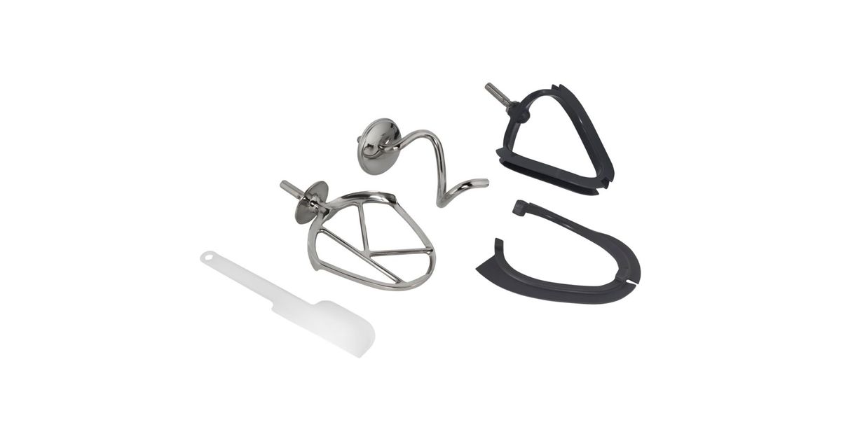 - 3-piece stainless steel patisserie set: whisk, dough hook, K-hook