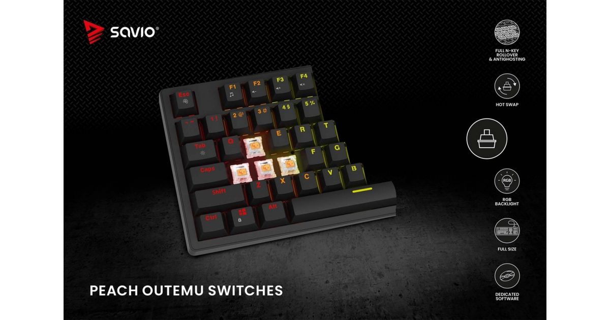 Savio STYX is a full-size mechanical keyboard created for gamers and professionals who dont accept compromises. It combines everyday comfort with gaming-grade performance and striking design. With rich personalization, high durability, and modern features, STYX excels both in gameplay and at work.
