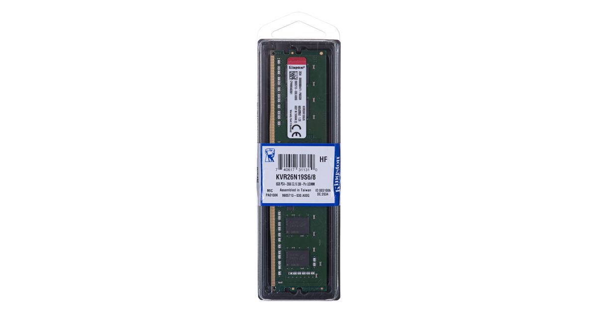 Kingston Technology KVR26N19S6/8, 8 GB, 1 x 8 GB, DDR4, 2666 MHz, 288-pin DIMM