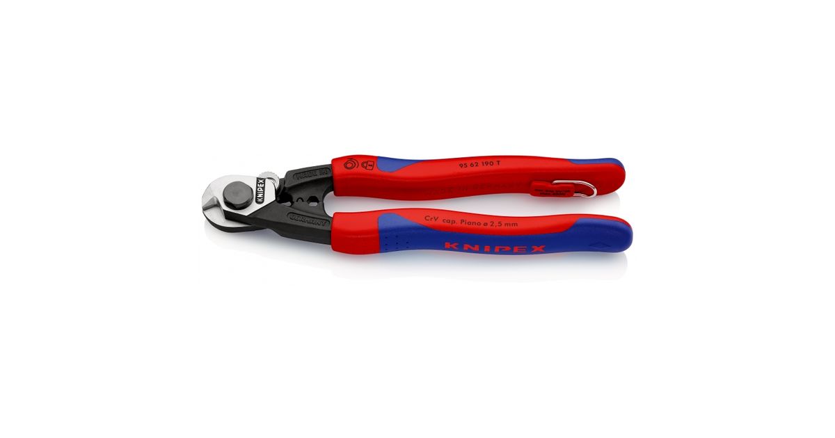 Knipex 95 62 190 T, Hand cable cutter, Sininen, Punainen, Muovi, Terästä, Musta, Sininen, Punainen, CE, 190 mm