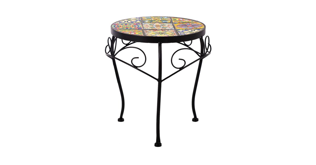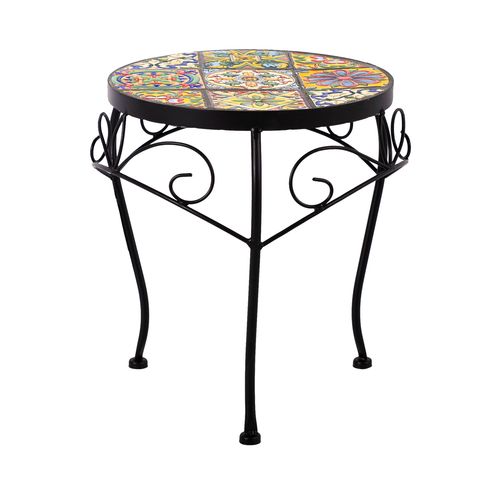 Kukkapöytä MOROCCO D30xH35cm, mosaiikkilevy, metallirunko, väri: musta.