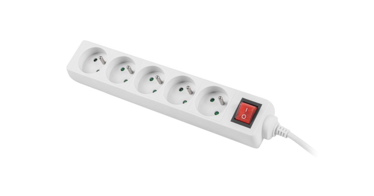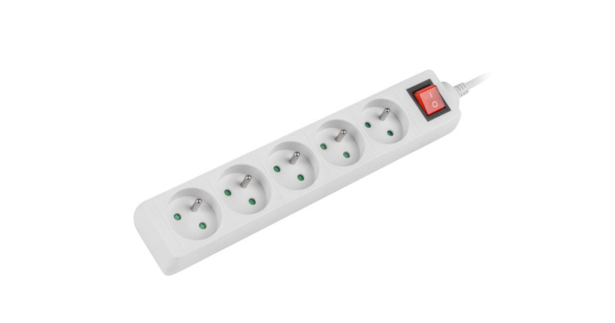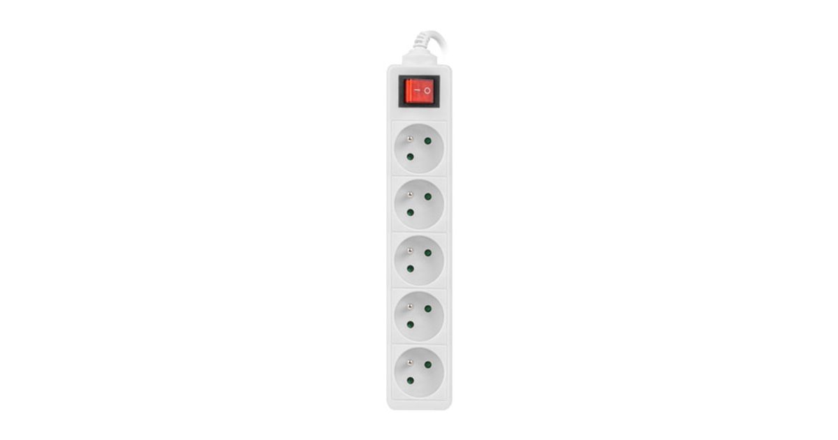 Lanberg PS1-05E-0300-W, 3 m, 5 AC-pistorasia(a), Sisä- ja ulkotila, Tyyppi E, IP20, 1 mm²