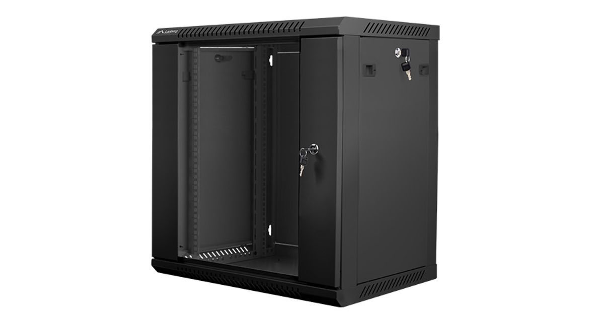 Lanberg WF01-6412-10B, Seinään asennettava laitekehikko, 12U, 60 kg, Näppäinlukko, Kotelon kiskot, 21 kg