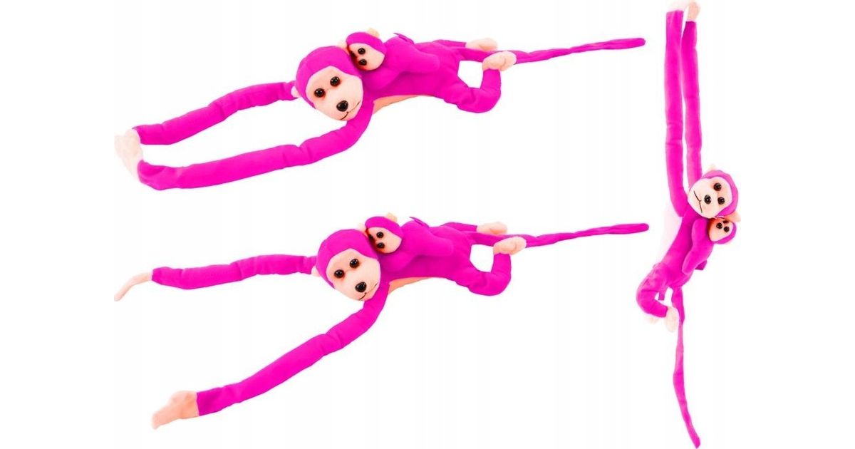 LeanToys Maskotka Pluszowa Małpka z Dzieckiem Ciemno Różowa z Dźwiękiem 70 cm