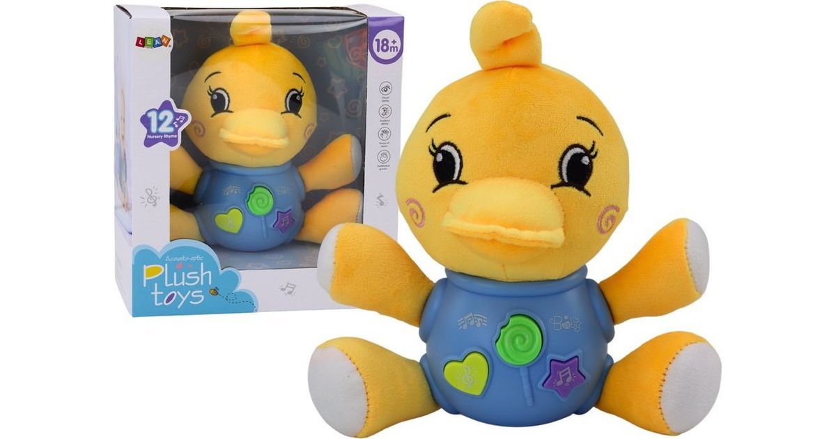 LeanToys Plush Duck Interactive Plush Yellow Mängib 19 cm