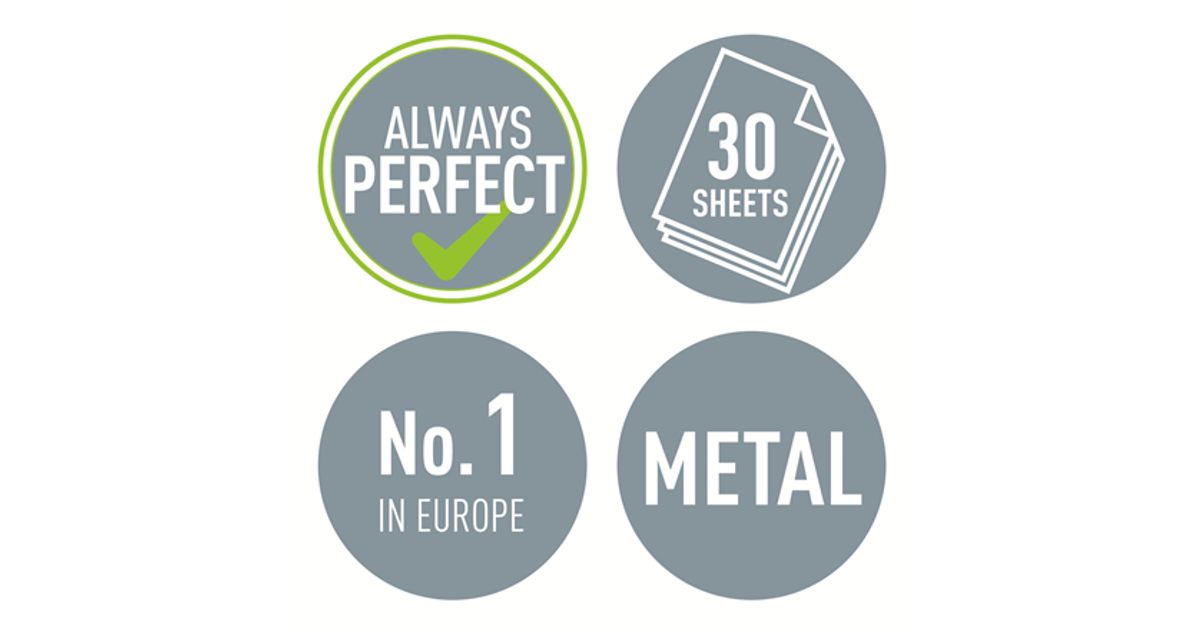 Leitz 50081095, 30 arkkia, Musta, Valkoinen, Metalli, 8 cm, 5,5 mm, A4, A5, A6, Folio, US-Quart, 8 x 8 x 8cm