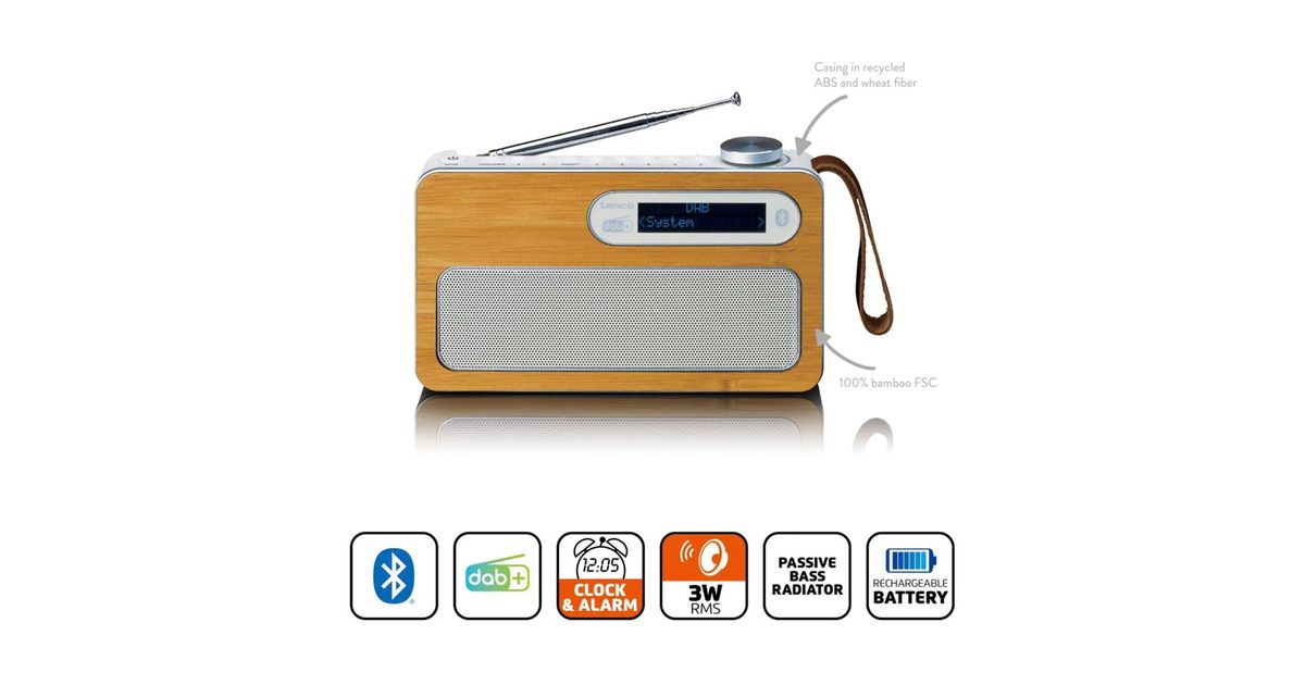 Lenco PDR-040EF - Portable DAB+ radio with Bluetooth 5.0 and clock and alarm function - 3 Watt RMS - 2000mAh battery - Bamboo