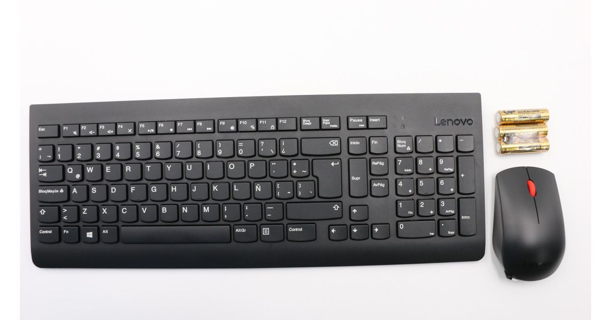Lenovo 01AH848, Täysikokoinen (100 %), Langaton RF, QWERTY, Musta, Sisältää hiiren