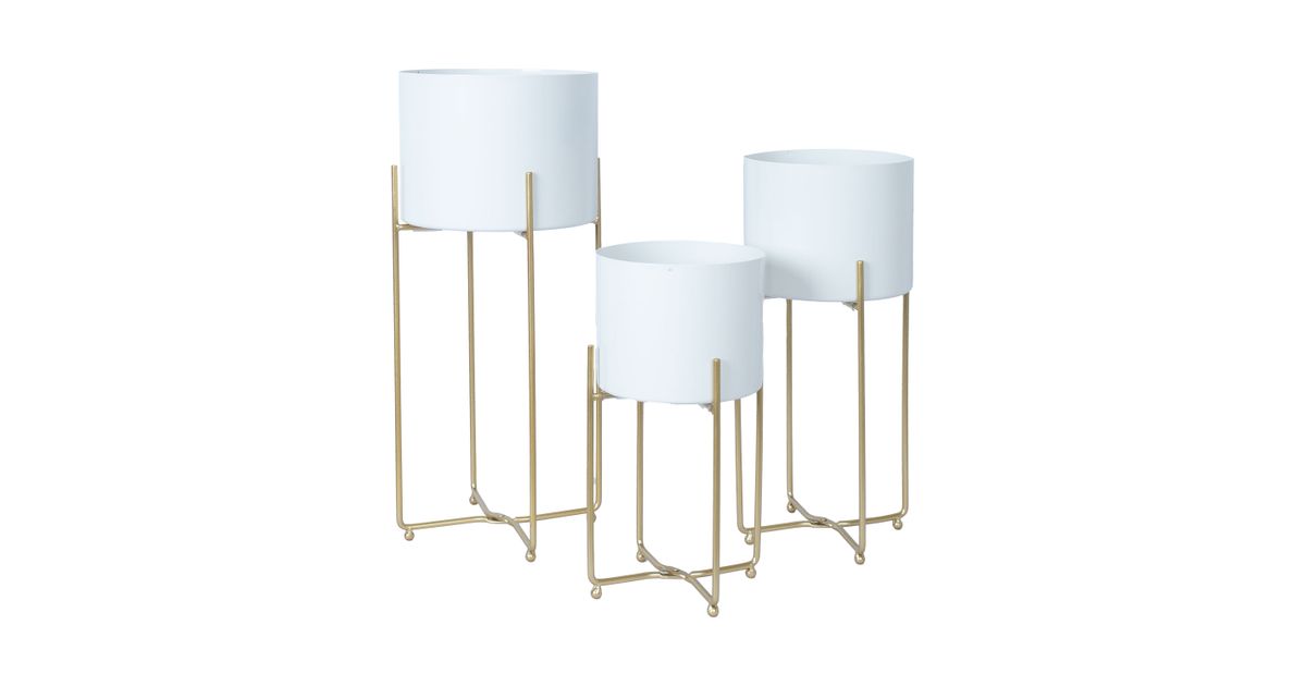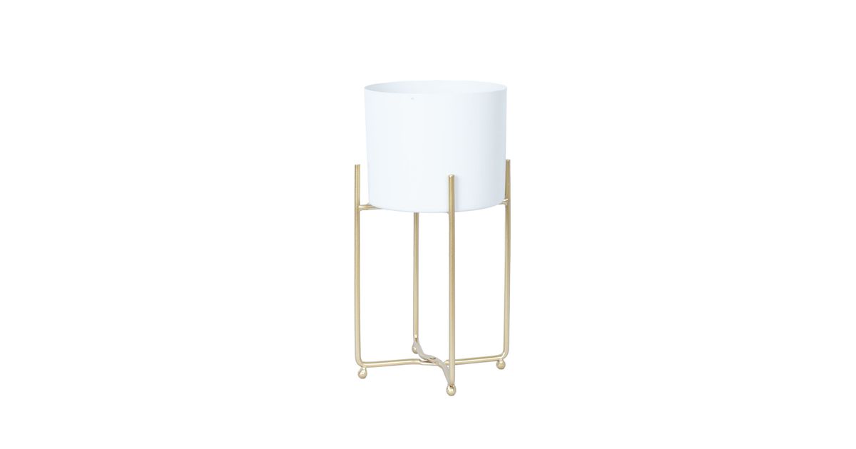 Lillepostament DEIA WHITE S 19,5x18xH37cm, valge/kuldne