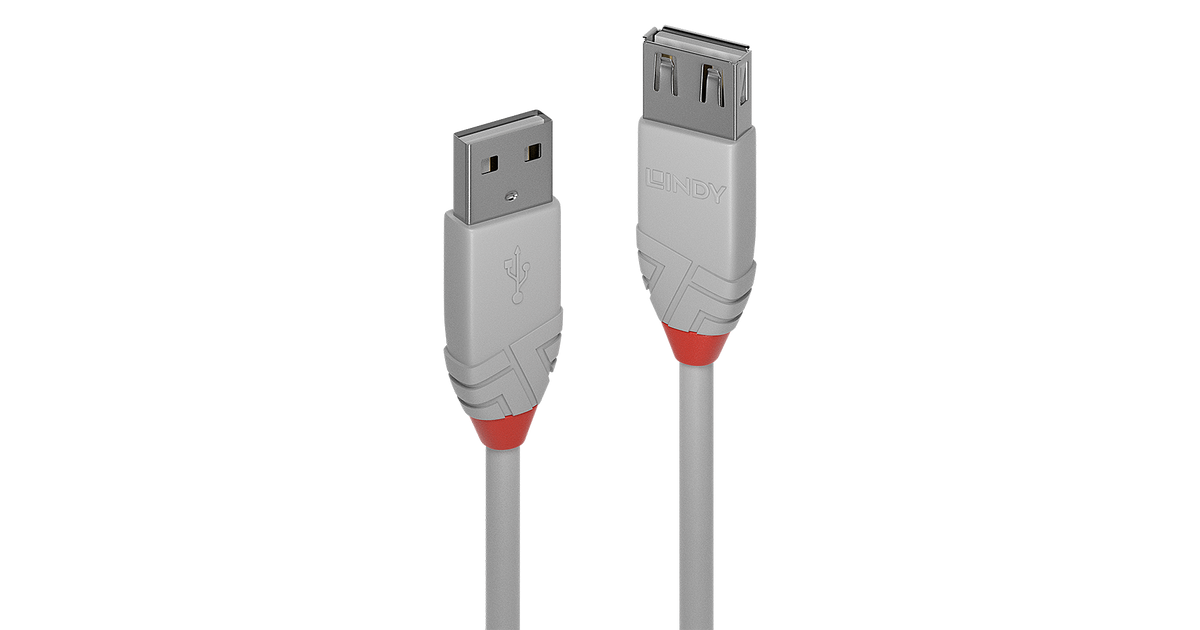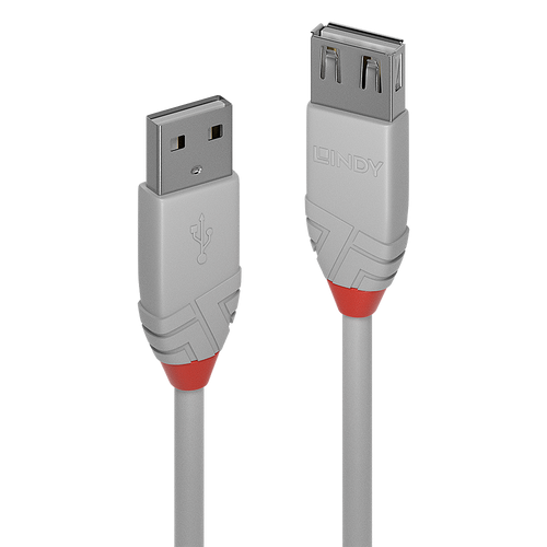 Lindy Anthra Line, 3 m, USB A, USB A, USB 2.0, 480 Mbit/s, Harmaa
