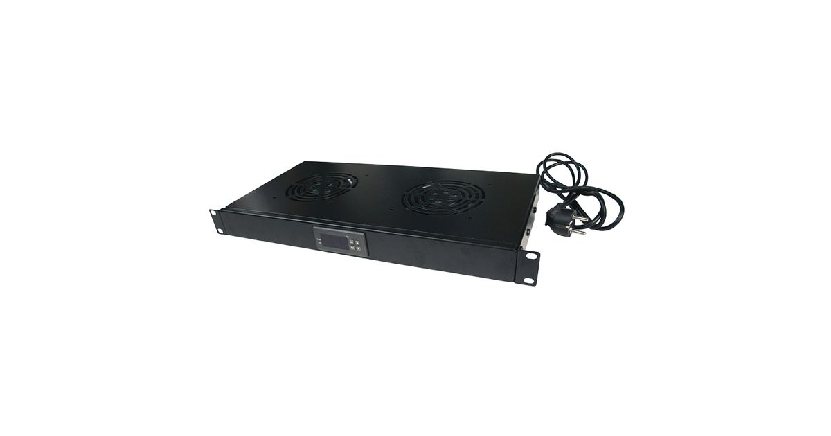 Lüftereinheit zur aktiven Belüftung von Stand- und Wandschränken zum einfachen Einbau in die vordere Befestigungsebene. Passend für alle Racks mit einer 482,6 mm (19")-Ebene. Mit Thermostat und 220 V Anschluss.