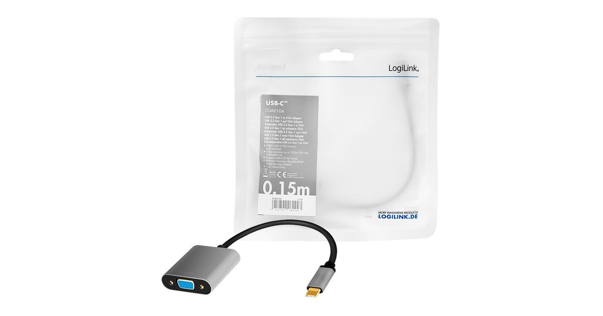 LogiLink CUA0104, 0,15 m, USB Type-C, VGA (D-Sub), Uros, Naaras, Suora
