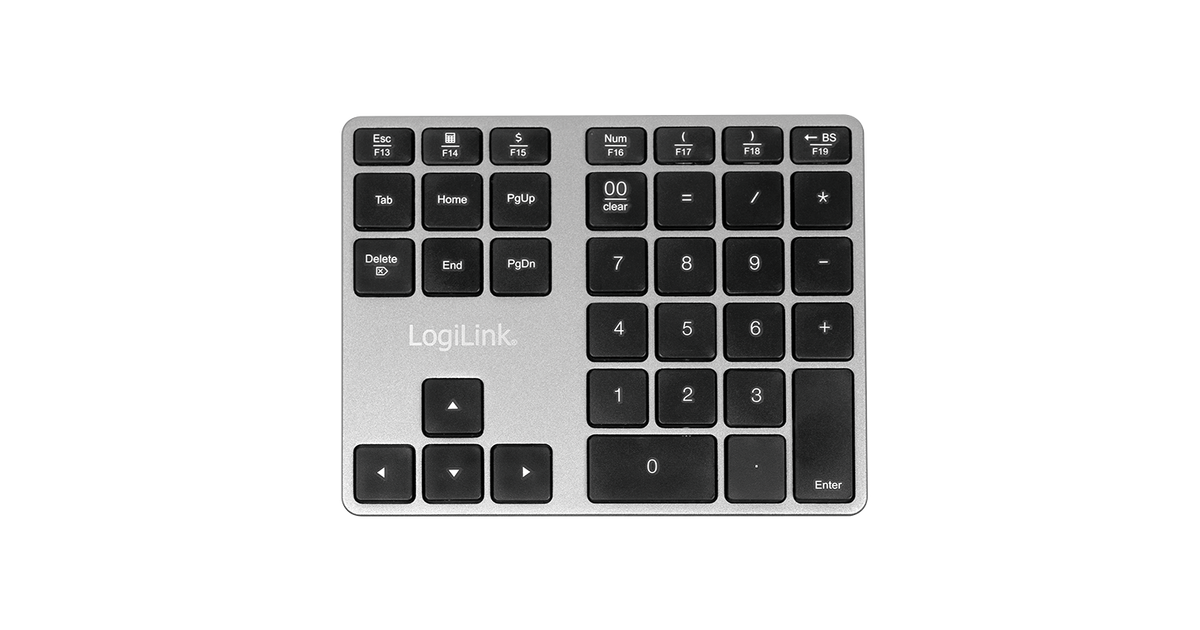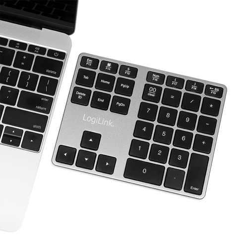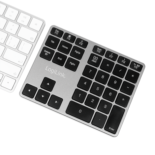 LogiLink ID0187 Numeerinen näppäimistö Universaali Bluetooth Alumiini, Musta