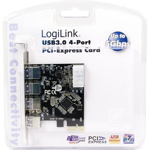 LogiLink PC0057, PCIe, USB 3.2 Gen 1 (3.1 Gen 1), Täysi korkeus, 4x USB 3.0 A FM, Musta, PC