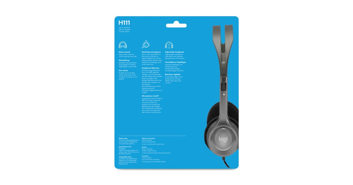 Logitech H111, Langallinen, Toimisto/puhelukeskus, 20 - 20000 Hz, 74 g, Kuulokkeet, Harmaa